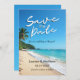 Notera bröllop i paradiset med dessa tropiska "Rädda datum"-kort, med en solisk tropisk strandscen med handflatan träd och oceanen vågar. Perfekt för ett destinationsbröllop. Den här utformningen kan vara personlig med namn, bröllop datum och plats. Ett vackert sätt att låta dina gäster få veta att de ska märka sina kalendrar och få redo för ditt oförglömliga hav firande.