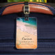 Ange tonen för ömåldjuren med den tropiska persikomålsbröllop Spara datum - resagemärkning. Anpassa den med platsen för din giftermål och ditt foto. Den här märkrn i anpassningsbarna innehåller ett naturfotografi av ett tealblått turkoshav och vinkart som bryter på en sandstrand med vit handflatan träd och akvarier som snurrar runt hörnet. Sangria-filtret har tillsatts för att öka effekten. Ta bort eller byt ut den mot kostym som du behöver.