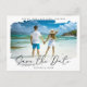 Det här är ett målbröllop som sparar datumkortet med hjälp av ett stil-teckensnitt för elegant tillsammans med en modern fotodesign som är tryckt på ett bekvämt vykort. Den omvända sidan innehåller två meddelanden som du kan anpassa. Ändra enkelt färg, text och foton efter behov. Kontakta designern om du vill ha frågor som rör den här designen.