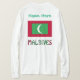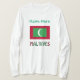 Långlivad kvinnas t-shirt med röd och grönt i Maldiviska Flagga, med ord MALDIVES nedanför, i flagga färg. I utrymmet ovan kan du lägga till ett namn, i grönt brev, för en speciell blick. Eller, ställe, någon annans namn på platsen för en personlig gåva. Utformningsprogram på framsidan och baksidan av T-shirt. Bara sak för en Maldiviansk familjeåterförening.