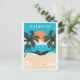Vem som helst skulle vilja att kärlek fick detta vykort från vintage resor med en återillustration av en kvinna på en strand på Maldiverna!