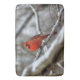 En ljusröd kardinal lägger till ett färg på en drömsfull snödag.
