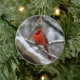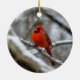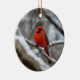 En ljusröd kardinal lägger till ett färg på en drömsfull snödag.