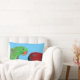 den beställnings- dekorativ kudde med följepapegojainställning av scarlet fjädrar som presenterar en manlig och den kvinnliga eclectusen, mekaniskt säga efter