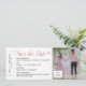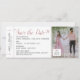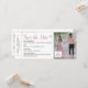 Vid påstigning med Biljett Spara datummeddelandet om inbjudan till ett målbröllop i utlandet som har en redigerbar mall med plats för foto- och autentiska retrodetaljer som pub-kod och datorskrivarteckensnitt med rosor i ro guld och romantiska flygplanssymboler. Pappra Grape Destinations på Zazzle specialiserar sig på inbjudningar till resetema och bröllop-dagarsskrivningar för ävententurous, darrande pars som planerar sina nuptialer utomlands. ©Papper Grape