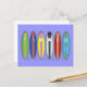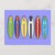 Malibu Beach, det är en livsstil. Sex färgstarka surfingbrädor på blå havsspray som skildrar den sydliga kaliforniska livsstilen sand, hav och surfa. Roligt vid havsområdet med den här unika, sommarfärgade Malibu Beach-ytorna. Njut av den kaliforniska bilden och livsstilen var som helst genom att skicka det här snyggtens originalvykort från Golden State i Stilla havet.