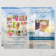 Pittoreskt blått beach-brevstorleks dödsannons för män, med en vacker fotokollage. Inkluderar utrymme för en dödsruna, ordning för ceremonin, dikter och mer för att skapa en passande hyllning till din älskade. All text är enkel att redigera och helt anpassningsbar.