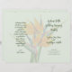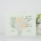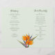 Mall för bröllopsprogram med orange av blommor från paradiset. grönt för blek papper med fyra sidor som ska anpassas i skript och utskriven mörk grönt text. Inkludera ett meddelande till familj och vänner på sista sidan/baksidan av programmet när det viks.
