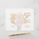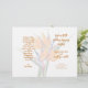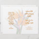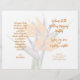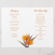 Mall för bröllopsprogram med orange av blommor från paradiset. Vit papper med fyra sidor att anpassa i skript och utskriven orange. Inkludera ett meddelande till familj och vänner på sista sidan/baksidan av programmet när det viks.