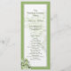 Grönt och vit, hög mall för bröllopsprogram är enkelt att anpassa på båda sidor. Malltexten för namn, ställe (och tid osv.) i bröllop och ceremonin finns på framsidan, med ytterligare två mallområden på baksidan och ett ställe för att lägga till ett tackkort. Båda sidor är dekorerade med vattenblommor i bakgrunden och en grönt gräns. Framsidan har en blommigt i grund-hörnet. Text är ett mörk grönt utskrivet teckensnitt förutom namnen för bruden och trimmen, som är ett skript för eleganten.
