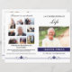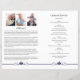 Ett vackert begravningsprogram för elegant med blå blommigt och blått namn-band. Det finns ett stort foto på framsidan, fotokollage på baksidan med 9 foton och gott om utrymme för en objektiv och serviceordning (eller annan text som du väljer på insidan). All text är enkel att redigera och kan anpassas för att skapa ett personligt och minnesvärt begravningsprogram för din kära. Det här begravningsprogrammet skriver ut dubbla sidigt på en enda lakan på Brev Storlek papper (8,5 x 11 tum). När dokumentet viks skapar det en häfte med 4 x 500 Brev storleka sidor (8,5 x 5,5 tum per sida).