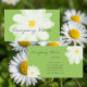 Mall för blomsterbutiker eller trädgårdsmästare. Elegantens skripttypografi med konsthjälp med vismisk daisy. Färgfull, glad grönt vit och gult färg. Anpassadets bakgrund färg. Blödning blommigt konst.