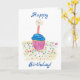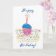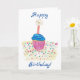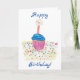 De här födelsedagskorten har min färgstarka målning av en cupkaka med blå isbildning, frostning, med en rosa omslag. Det finns ett stjärnljus i cupkakan och en konfektyr på bord trasa. Den levereras med en versa som också lätt kan vara personlig på mallformuläret. Tack för att du shoppade CherylsArt på Zazzle.