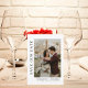 Den här eleganten Spara Datumkortet har guld ram med vattenfärgen ro och grönt gren som mallbakgrund. Orden "Spara datum" skrivs med svart text på vit bakgrund. Parets namn, datum och ställe i bröllop ingår också i svart på vit bakgrund. Ett foto av paret med elegant läggs till på kortet tillsammans med namn och datum och ställe på bröllop under detta.