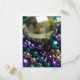 Fotografi av Mardi Gras pärlor. Bläden blåser i färgen guld, lila och grönt i Mardi Gras eller Carnival firande. Anpassa baksidan av vykortet med din egen text eller bilder. Gör inbjudningskort eller inbjudningar till vykort i anpassningsbar party!