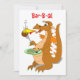 Dessa för partyinbjudningar för pub-b-que sport en orange- och brunttecknaddrake. Den andas flammar på dess hamburgare. Över det något att säga, "Pub-B-q!", i en skämtsam röd stilsort.