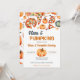 Mall för inbjudan till pizza- och pumpa-skärfest, direkt digital nedladdning, akvarellpizza och pumpor för Halloween-tema pumpafest.