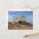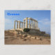 Ett vackert vykort från Grekland som visar ett foto av ruinerna från det gamla templet Poseidon, gud för havet i grekisk mytologi, på Kap Sounion i Attika, Grekland.