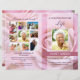Söt begravningsprogram med ett rosa ros-foto överallt. Innehåller utrymme för en obituär, serviceordning, dikter och annat som skapar ett vackert program för din älskade. All text är enkel att redigera och fullständig anpassade. Det här begravningsprogrammet skriver ut dubbla sidigt på en enda lakan på Brev Storlek papper (8,5 x 11 tum). När dokumentet viks skapar det en häfte med 4 x 500 Brev storleka sidor (8,5 x 5,5 tum per sida).