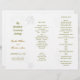 Fyll den här mallen för Fall-bröllopsprogram i tredjedelar efter köpet. Ett löv-mönster täcker baksidan av denna vita papper. Brun och mörk grönt malltext är lätt att ändra och anpassa för ceremonin. Den öppnas som ett dragspel med all utskrift - bilder och text - på ENA SIDE ENDAST och måste vikas efter köpet.