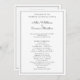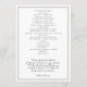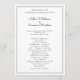 Mall med vanligt vitt bröllopsprogram med text på båda sidor. Storlek 5x7-provdesign passar in på några andra storlekar. Vita, platta kort har pappra uppgraderingar som tillval. Skrivna och handskrivna skript typsnitt är svarta och båda sidorna har tunt svart och grått linjer runt kant till ram. Anpassa rubriken, ange datum och tidpunkt för händelsen, ordning för ceremonin och ange bröllopsfesten. Ett par kan använda en mall på baksidan för att skriva ett personligt meddelande till gästerna. Eller använda utrymmet för att nämna släktingar som inte längre lever, utan är närvarande i hjärtat. Detta är en enkel programutformning med neutralt som fungerar för många olika ceremonier i giftermål.