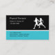 Fysikaliska terapeutiska affärskort i en enkel design som innehåller en atletisk springer silhuettes tillsammans med textmallar som du enkelt kan anpassa och anpassa. Designade för teman som rör fysisk terapi, sportrehab eller medicinsk massage.