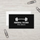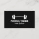 Affärskort med visitkort för persontränare. En enkel modern utformning av logotypen för fysisk lämplighet för sportetiska tränare, viktlyftning, tränare för träning, gymnastikägare, nutritionister osv. Svartvit företagskort för professioneller. Ikon för att lyfta barbell.