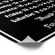 Det finns vit visningstext som du kan redigera för att lägga till ditt företagsnamn, ett anpassat meddelande och dina dagliga öppettider för söndag till lördag. Denna skylt för öppettider är svart. Texten är vit. Kanten på affischen är vit. All text kan redigeras eller raderas. Längst ner finns mer visningstext för ett anpassat meddelande (visas: Tack för ditt besök)