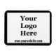 Du kan ersätta visningen med företagets logotyp på den här bilmagneten för att marknadsföra företaget. Under logotypen finns det visning som du kan redigera för att lägga till webbplatsen eller ett anpassningsbar-meddelande. Texten är svart. Den här vita magneten har en svart gräns.