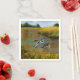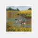 Manlig och kvinnlig gräsänder anka under flygning över en gulddamm, vatten under upplopp för att spegla färgen av den bakgrundskoncentration av höstblad som glöms i solljuset. Realistiskt konstnärligt verk skapat från en ursprunglig oljemålning av naturkonstnären Crista S. Forest.