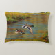 Manlig och kvinnlig gräsänder anka under flygning över en gulddamm, vatten under upplopp för att spegla färgen av den bakgrundskoncentration av höstblad som glöms i solljuset. Realistiskt konstnärligt verk skapat från en ursprunglig oljemålning av naturkonstnären Crista S. Forest.