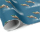 Pluft av gräsänder ankor som flyger över vatten med blå bakgrund. Bakgrunden till färg kan ändras.