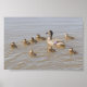 En kvinnlig gräsänder anka (Anas platyrhynchos) med sina anklingar vid den Stigning Sol Land Park, Newcastle upon Tyne.