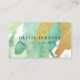 Affärskort Template Grönt Guld Watercolor Art for Hennes Elegant Abstrakt Watercolor Art med baksida