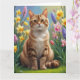 En glad katt sitter fredligt på lush grönt gräs, omgiven av färgfulla vår blommar under ett mjukt blå himmel. Den här digitala oljemålningen fångar upp ett ögonblick med uttryckliga penseldrag, varmt färg och en känsla av varm glädje.