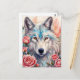 vargens huvud rosa ros djur naturlevande natur originalkonstmålning vykort