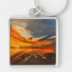 Målning av Scripps Pier, La Jolla, CA Fyrkantig Silverfärgad Nyckelring