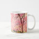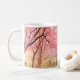 Målning av vattenfärgslandskap rosa röd blomma av kaffemugg