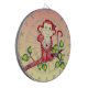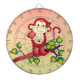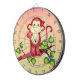 Här är en ritbord med roligt som innehåller en röd apa med ett långdraget kurande svan på träd gren omgiven av grönt löv.
