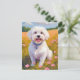 Malteser Hund Blomster Fält Målning vykort