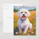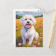 Malteser Hund Blomster Fält Målning Vykort