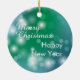 På framsidan av denna Helgdag är ornament en vattenfärgsbild av en liten vit maltesisk hund som bär en ljusröd Jultomten hatt. Bilden visas mot en övertoningsbakgrund och mot en blå grönt. Baksidan av dekoratet har samma bakgrund med anpassningsbar vit text som för närvarande heter "God jul Gott nytt år". Tur för vem som helst, även om man inte är "ägt" av maltesiska!