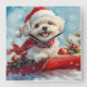 Malti Tzu Hund i Sledge Låt det snöa jul Fyrkantig Klocka
