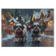 Denna festliga design fångar den glada känslan av semestern, med en bedårande hundar.Boende i en vintersaga, komplett med ett dekorerat julgran, och vackert inslagna presenter. Snöflingor faller försiktigt, vilket ger en magisk touch till scenen, medan de levande färgerna på semesterdekorationerna skapar en varm och glad atmosfär.