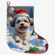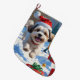 Malti Tzu springer i Snö med julhögen Stor Julstrumpa