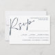 Designat att samordna med vårt "MODERN Calligraphy Script PHOTO BRÖLLOP SUITE" med denna minsta OSA kort för contemporary har en minimal typografiktext i Blue Navy med calligraphy accent on the top of the card med utrymme med önskat svarsdatum och val av måltid eller inmatningsmarkeringar. En modern och klassam utformning för elegant chic bröllop under vilken säsong som helst. Vi kan byta färg, typsnitt och annat för att göra din design unik personlig. Kontakta oss via butiken eller skrivan på citronelladesign@gmail.com om du behöver hjälp eller anpassningsbar.