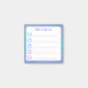 Att göra ett listigt anteckningsblock i mamma kan vara personlig med ett annat namn. Det är ett litet fyrkantigt anteckningsblock med 3 x 3 klibbiga punkter med skuggor av blått och lila på vit bakgrund. Det finns en pseudo sparsam lila och blå gräns. Du kan ändra texten som säger "Att göra lista" till någon annan typ av lista om du vill. Det finns kryssrutor bredvid vart och ett av 5 linjer som kan kryssas för när varje uppgift är klar. Behålla det enkelt med bara 5 sak att göra!