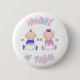 Knappen "Mamma av Twillingar" i blått och rosa och en söt pojke och flicka i blått och rosa.