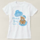 Fira baby med den här vackra mamman att bli en babyskjorta med en sömnig brun björn med baby blue hatt och sitta på ett moln.