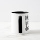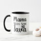 Kaffe mugg med frasen "Mamma behöver lite java" i svart med en modern design för svarta kaffebönor.